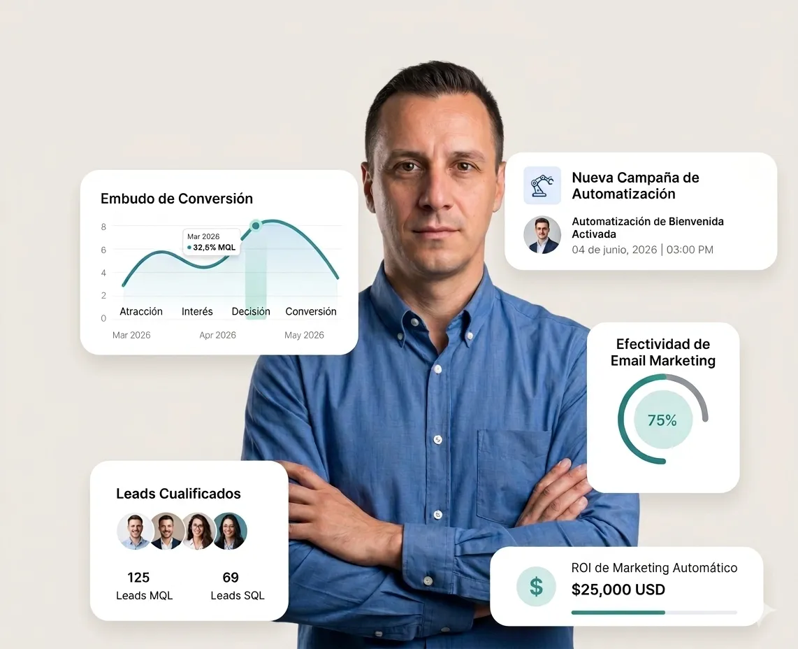 Implementamos sistemas de automatización que optimizan tu flujo de trabajo. Desde seguimiento de leads hasta reportes automáticos, liberamos tiempo valioso para tu equipo.